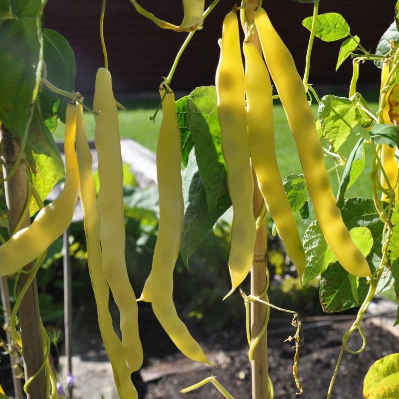 Från 1800-talet, inget specifikt årtal finns. Gammal svensk sort som blir hela 2 meter hög och bönorna är ljust gula och blir cirka 20 cm i längd! En väldigt högproduktiv sort som får helt trådfria baljor. Den är vacker, god och man får så mycket bönor att man får frysa in! Och de går utmärkt att frysa in den här sorten.
