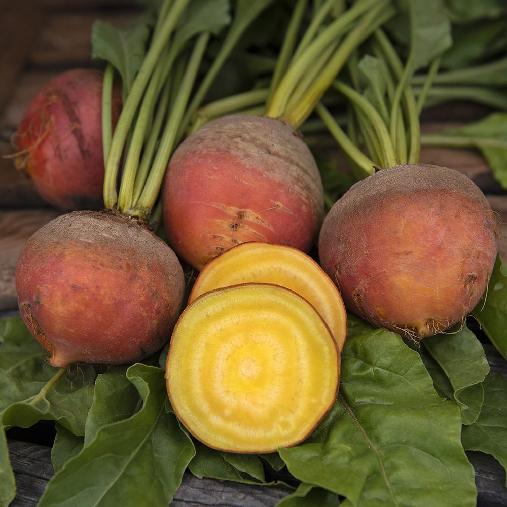 Från före 1828. En mycket gammal rödbeta som inte är en gulbeta fast den är gul :) En sort som blev väldigt populär då den smakar väldigt gott men den färgar inte av sig. Man kan även äta blasten som man tillagar som spenat. Så den ej för tidigt då den gärna går i stock då.
